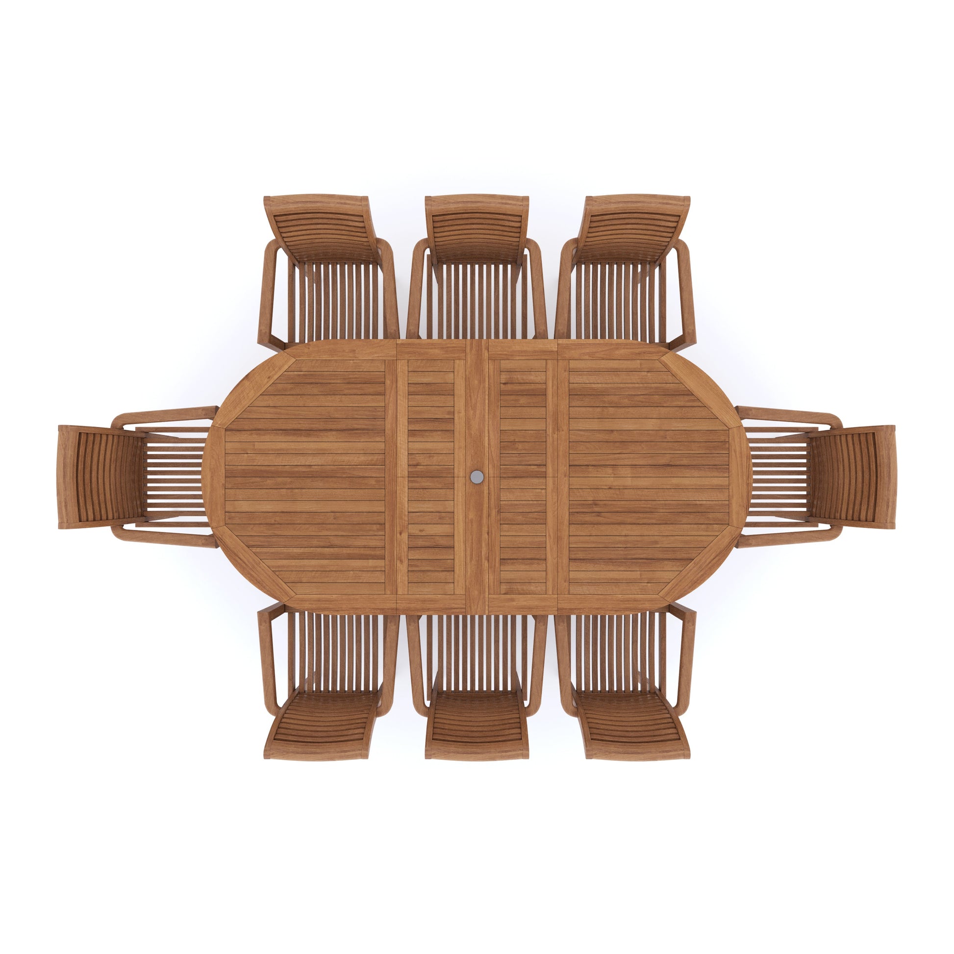 180cm to 240cm Teak Oval Extending Table with 8 Oxford Stacking Chairs